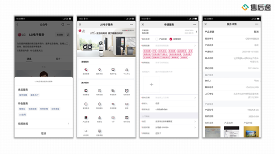 为适应LG电子中国用户的使用习惯,售后逸为LG电子中国提供“LG电子服务”微信公众号的用户售后服务申请通道,用户可基于微信公众号进行售后服务申请、服务跟踪和问题查询,且微信、电话、网页等多个售后服务受理渠道接入的服务基于统一服务中台进行受理、分类和监控,创建无缝客户体验。同时,LG电子中国的微信公众服务号与售后逸通过API对接,并与LG电子全球售后服务管理系统进行实时数据同步,极大的改善了用户的服务申请体验,并降低了LG电子客服人员的工作量、提升工作效率。