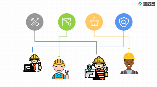 l 不同品类的电器需要掌握对应维修技术的维修师傅或服务商才能维修,调度人员无法快速选择合适的上门服务人员,工作任务无法快速派发给服务人员