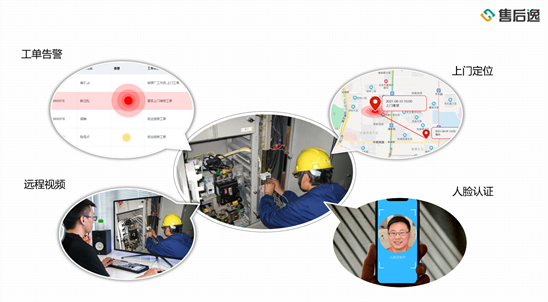 售后逸支持通过地图定位确定师傅是否抵达服务现场,还具备人脸核验功能,自动确认现场服务工程师是否为指派的工程师。同时售后逸支持多种类型字段的自定义,可通过配置图片、视频、签名等特殊字段,进行现场服务状况进行监控和确认。